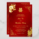 Ce faire-part de mariage chinois traditionnel est doté d'une véritable feuille d'or double symbole de bonheur, de fleurs de pivoines chinoises et d'un véritable texte de feuille d'or dans un script manuscrit et d'une police sans empattement moderne. À l'arrière se trouve le texte chinois traditionnel, un faux feuille d'or correspondant double symbole de bonheur et un cadre d'or traditionnel.