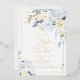 PixDezines Baptism 3 couleurs feuille disponible, avec hydrangées bleu glace aquarelle et roses d'albâtre avec ressorts de gomme eucalyptus; une fausse croix d'or, poussière d'or et cadre accentué avec script de calligraphie de luxe. Tous les éléments modifiables et amovibles. Copyright © 2022 PixDezines™. Tous droits réservés.