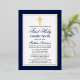 Elégant Marine Bleu et Or Première Sainte Communion Invitation avec Croix. Cadre à huile d'or. Gold Foil Cross. Refusé.