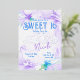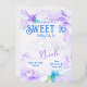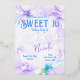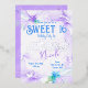 Invités Invitations à votre soirée Sweet 16 avec de belles invitations florales violettes et bleues. Le lettrage floral pour votre nom peut être facilement modifié. Les fleurs sauvages peuvent être redimensionnées et repositionnées avec votre texte. La palette de couleurs botanique violet, bleu et argent est polyvalente pour les bat mitzvah et les quinceaneras. Une libellule et un papillon sont ajoutés pour une touche finale. Parfait pour les thèmes de couleur lilas, lavande, pastel !