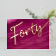 Quarante abstraits arrière - plan d'art rose foncé avec un texte rose en feuille d'or ou votre propre couleur de feuille. Personnalisez ce script de fête de 40e anniversaire d'art jalon invitation anniversaire avec vos propres détails de fête d'anniversaire, et une photo de votre fille d'anniversaire au verso. D'autres années, des couleurs et des articles assortis sont disponibles. © Design original par Sarah Trett pour www.mylittleeden.com sur Zazzle.