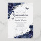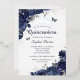 Invitation En Aluminium Quinceanera en argent de la marine à papillon