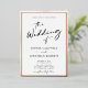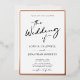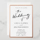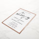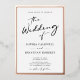 Design moderne Rose Gold Foil Calligraphy Script Faire-part de mariage... Notre bordure dorée rose sur faire-part de mariage blanc est composée d'un script de calligraphie noir moderne combiné à une typographie serif et sans serif pour une faire-part de mariage simple et chic... bordée d'une véritable feuille d'or rose. Tous les exemples de texte peuvent être facilement révisés avec vos propres informations sur le modèle de personnalisation.