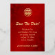 Ce mariage chinois élégant, à l'exception de la carte datation, présente une belle branche de fleur de cerisier en feuille d'or et un double symbole de bonheur sur un arrière - plan rouge cramoisi chatoyant.