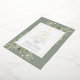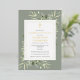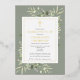 Une élégante photo personnalisée de célébration de la vie souvenir invitation funéraire avec feuille d'or véritable, aquarelle botanique feuillage verdoyant sur un arrière - plan vert sage. Conçu par Thisisnotme©