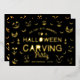 Annoncez vos invités à votre soirée de sculpture citrouille éffrayante d'Halloween et à votre invitation avec nos visages citrouilles de sculpture jack-o-lanterne effrayants. Notre design présente différents visages de sculpture citrouille effrayants qui se jettent dans l'obscurité dans la feuille d'or. Les chauves-souris et les bougies cirées ajoutent à l'effrayante invitation d'Halloween. L'envers présente les faces de sculpture citrouille éffrayant Halloween avec les détails de Halloween placés au centre. Toutes les illustrations contenues dans cette invitation éffrayante à la sculpture citrouille d'Halloween sont des oeuvres originales dessinées à la main par Moodthology. Vous pouvez customiser la taille du texte, la couleur du texte, la police et la mise en page de votre propre préférence de conception personnelle.