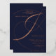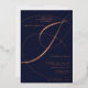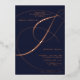 Chic et élégant vrai rose de la calligraphie feuille d'or faire-part de mariage avec et fleurit l'esperluette sur bleu marine. Avec un magnifique script de calligraphie de brosse.