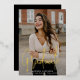 Faire-part de graduation moderne avec votre photo verticale sur le devant avec "Graduate" affiché dans une feuille d'or manuscrite superposition de script. Personnalisez le devant du faire-part de remise de diplômes avec le nom du diplômé, le nom de l'école et l'année de remise de diplômes. La faire-part de graduation de la feuille s'inverse pour afficher une photo supplémentaire avec de l'espace prévu pour inclure les plans futurs du diplômé, les détails de la graduation, etc. Les 2 faire-part de remise de diplômes photo sont parfaits pour les diplômes du secondaire et collégial!