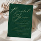 Simples invitations de douche nuptiale avec "Fête des mariées" affichées dans un script de calligraphie de feuille d'or avec un arrière - plan vert. Personnalisez les invitations à la douche nuptiale en feuille vert et or avec le nom et les détails de la douche de la future mariée ci-dessous. L'invitation de douche nuptiale moderne s'inverse pour afficher un arrière - plan vert solide.
