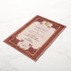 Cette faire-part de mariage exquise saisit l'essence du mariage musulman traditionnel avec son design élégant en dentelle dans une teinte chaleureuse et rubis. Les subtilités délicates de la frontière encadrent la page, menant l'oeil à la calligraphie islamique sacrée en haut du centre. L'arrière - plan vieillissant parchemin donne une impression vintage, tandis que les détails ornés autour résonnent avec la grandeur de l'art musulman classique. La riche palette de couleurs de l'orange brûlé, avec des accents de terre cuite foncée et de crème subtile, évoque l'impression d'un coucher de soleil, parfait pour une soirée de célébration. Cette invitation n'est pas seulement un héraut des noces à venir, mais aussi un gardien de la beauté et de la signification culturelles.