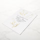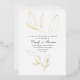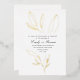 Simple et élégant, ce faire-part de mariage en feuille d'or présente une tige botanique dessinée à la main qui fleurit derrière une belle typographie.