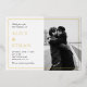 Découvrez la fusion de la tradition et du contact personnel avec nos invitations de mariage sur mesure ! Élégamment aménagé dans une orientation horizontale, le côté gauche de l'invitation marie la beauté intemporelle d'un script élégant à la sophistication classique d'une police serif, préparant la scène pour votre journée spéciale. Mais ce qui distingue vraiment cette invitation est son côté droit, où vous pouvez placer votre photo personnalisée, donnant à chaque invité un aperçu de votre amour et joie partagés. Pour rehausser sa grandeur, la carte est ornée d'une bordure méticuleuse et les noms du couple chatoyants dans une véritable feuille d'or. Étendez votre faire-part de mariage non seulement en tant que faire-part d'évènement, mais en tant que gardien de votre histoire d'amour, brillant brillamment en or!