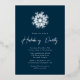 Invitations de fêtes de foil moderne avec un flocon de neige en feuille d'argent au sommet du design avec un arrière - plan de la marine festive. "Holiday Party" est affiché dans un script manuscrit en feuille d'argent. Personnalisez les invitations aux fêtes de fêtes de fêtes de flocon de neige en papier blanc avec vos détails de fête.