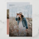Un faire-part tendance de graduation avec un script simple et un message à l'arrière.