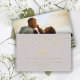 Un design élégant et simple, minimaliste et moderne qui impressionne vos amis et votre famille, présente un véritable script de calligraphie de feuille d'or contre un arrière - plan de couleur taupe. Customisez facilement avec vos informations personnelles sur le devant de la carte et votre photo géniale sur le dos.