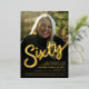 Soixante caractères gras de feuille d'or ou votre propre couleur de feuille. Personnalisez ce script de fête de 60e anniversaire photo invitation anniversaire avec vos propres détails de fête d'anniversaire, et des photos de votre fille d'anniversaire. D'autres années et les articles correspondants sont disponibles. © Design original par Sarah Trett pour www.mylittleeden.com sur Zazzle.