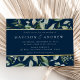 Élégantes invitations de mariage botanique avec aquarelle verte et feuille d'or bordant vos détails mariages avec un arrière - plan de marine. Les invitations de mariage verdoyantes modernes s'inversent pour montrer un arrière - plan bleu marine solide. Conçu pour coordonner avec notre collection de mariages de verdure Abondante.