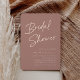 Invités Invitations pour célébrer la mariée d'être avec ces invitations de douche nuptiale modernes et minimes avec d'étonnants accents roses en feuille d'or. Le design simple comprend une "douche nuptiale" en écriture décontractée manuscrite, avec les détails de votre événement aligné à droite en lettres blanches modernes sur un arrière - plan en terre cuite.