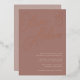 Une belle faire-part de mariage typographique avec vos noms dans un grand script rose en feuille d'or en lettres en haut. Personnalisez avec vos détails de mariage dans les lettres serif classiques alignées en bas à droite. Notre colorway en terre cuite est un élégant mélange de neutrales terreux, avec du lettrage chaud blanc rose taupe sur un arrière - plan en terre cuite.
