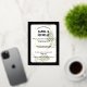 Célébrez votre amour avec cette luxueuse faire-part de mariage voûtée avec un élégant arrière - plan noir, feuillage d'olivier doux et un cadre doré géométrique moderne. La citation poétique et la typographie sophistiquée rendent ce design parfait pour des soirées mariages ou des cravates noires. Entièrement personnalisable avec vos noms, date, heure et emplacement. Un choix étonnant pour les couples à la recherche de style et de sens.