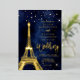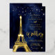 Un mariage à thème parisien moderne, chic et glamour avec une parties scintillant d'or dessinée à la main Tour Eiffel française avec parties scintillant d'or brille sur une aquarelle bleu marine foncé et une véritable feuille d'or. Parfait pour les mariages de destination européenne.