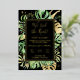 Cette élégante invitation à la réception d'élégants salons tropicaux propose palmiers vert et or, philodendron et feuilles fougères sur un arrière - plan noir. Un cadre élégant en feuille d'or met en évidence le texte en feuille d'or. Les plaques d'or accentuent ce design botanique exotique et apportent un peu de fantaisie moderne à l'invitation. "Nous avons lié le noeud ! " ainsi que les noms de la mariée et du marié sont présentés en haut. Les détails du vow mariage ainsi que l'emplacement et la date de la réception sont détaillés ci-dessous. Les informations RSVP sont au verso de l'invitation.