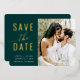 Typographie Élégante Emerald Green Photo Wedding Enregistrer La Date Gold Foil Card