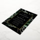Invitations de mariage élégantes avec vos détails mariages nichés à l'intérieur d'un cadre rectangulaire en feuille d'or entouré d'eucalyptus, fougères et autres riches verdure avec un arrière - plan noir. Les invitations de mariage botanique modernes s'inversent à un arrière - plan noir solide. Conçu pour coordonner avec notre collection de mariages de verdure Abondante.