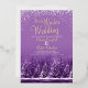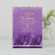 Mariage d'hiver pins violets et blancs dans la neige par la gouache du lac et invitations à l'art de l'aquarelle. Personnalisez avec vos propres détails mariages. Idéal pour un mariage de Noël ou un mariage d'hiver au bord du lac. Le titre dit : C'est un mariage d'hiver. © Gouache et aquarelle peinture et design par Sarah Trett www.sarahtrett.com pour www.mylittleedenweddings.com