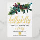 Le spermophile festif et le pin aux baies rouges viennent compléter cette invitation de Noël. La fête de Noël de Holly Jolly est écrite ci-dessous en feuille d'or pressée.