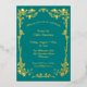 Invitation vos invités dans le style avec ce faire-part de mariage d'inspiration Art Nouveau exquis. Doté d'un riche arrière - plan vert émeraude magnifiquement orné de roses dorés brillants et d'un feuillage délicat, ce design exhale une élégance et un raffinement intemporels. Les détails complexes et l'effet de fausse feuille luxueux créent une première impression vraiment mémorable pour votre journée spéciale. Parfait pour les mariages formels, les anniversaires, ou toute grande fête à la recherche d'une touche de charme et d'opulence vintage. Personnalisez facilement tous les détails de l'événement pour en faire le vôtre.