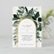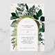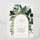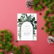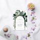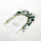 Invitations de mariage dans le jardin botanique de verdure moderne. Cette élégante faire-part de mariage voûtée est un choix idéal pour les mariages d'été ou de printemps du jardin extérieur. Caractéristiques peintes aquarelle feuilles botaniques avec des cadres modernes voûtés et initiale de la mariée et du marié dans une belle feuille d'or. Faites de ces invitations de mariage Garden une invitation élégante et unique qui donne une première impression à vos invités.