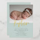 Invitation En Aluminium Vert Simple Moderne Calligraphie Baptême Photo