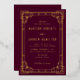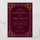 Invitations de mariage art déco moderne avec détails mariages encadrés par un cadre art déco en feuille d'or avec un arrière - plan de couleur vin. Conçu pour se coordonner avec notre collection de mariages Art Déco Moderne.