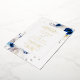 L'invitation Mariage Foil Foil Flowers Real Gold Elegant séduit par son étonnant design floral bleu et blanc, accentué par une typographie précise de feuille d'or. Cette invitation sophistiquée et branchée dégage une élégance intemporelle, parfaite pour une mariage moderne, classique et luxueuse. Ses détails opulents et ses couleurs harmonieuses préparent le terrain pour une fête inoubliable.