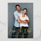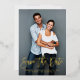 Annoncez votre date de mariage à votre famille et à vos amis avec cette carte d'annonce de date personnalisable. Il comprend la calligraphie géologique et la typographie simple. Personnalisez cette calligraphie enregistrez la date en ajoutant vos propres photos et détails mariages. Cette feuille d'or enregistrer la carte de date est également disponible dans d'autres couleurs de feuille.