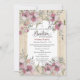 Floraux mauve et le feuille accentuent un arrière - plan en bois naturel. Une croix minimisée orne le dessus de l'invitation.