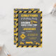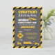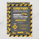 Mignonne en construction invitation fête d'anniversaire. Couleurs gris, jaune, noir et blanc avec camion de construction, panneau de prudence et motif cône de construction.