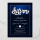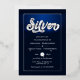 Invitation personnalisable pour une fête d'anniversaire de mariage argentée avec un effet de feuille d'argent et de bleu frais. L'effet de feuille sur la typographie "Silver" n'est pas réel.