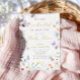 Célébrez l'arrivée magique d'un nouveau petit avec nos invitations à la douche bébé "We Are Enchanted To Meet You". Conçus avec élégance et charme, ces invitations disposent d'une police de caractères fantaisie de luxe qui ajoute une touche de sophistication à votre événement. Le design délicat et coloré de la bordure fleur sauvage d'aquarelle encadre magnifiquement l'invitation, créant une atmosphère fantasque et enchanteresse que les invités adoreront. En plus du charme, de mignons papillons flottent gracieusement autour de la frontière, symbolisant la joie et l'anticipation de l'accueil d'une nouvelle vie. Chaque élément est minutieusement conçu pour que votre baby shower soit aussi spécial et mémorable que la nouvelle arrivée que vous fêtez. Invitations amis et famille à partager votre joie avec ces invitations baby showers enchanteurs, où chaque détail chuchote, "Nous sommes enchantés de vous rencontrer."