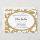 Un arrière - plan blanc avec tissé avec le feuillage d'or et recouvert avec un flourish ovale qui tient l'information de votre partie. Approprié aux anniversaires, aux anniversaires, aux retraites ou à toute occasion. Il est facile customiser la carte avec vos mots, police, couleur de police et choix de six types de papier.