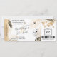Destination Beach Mariage Carte d'embarquement Billets Gold Plane Économisez la date avec le coeur et l'icône d'avion avec des feuilles tropicaux