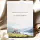Annoncez votre mariage avec cette carte majestueuse "Save the Date", avec une description captivante des Highlands écossais. La carte présente un beau mélange de tons pastel doux, bleu ciel, vert verdoyant et beige chaud. Les détails de l'aquarelle témoignent de la grandeur d'un château écossais historique niché au milieu de collines ondoyantes et d'un lac serein, évoquant un sentiment de romantisme et d'élégance intemporelle. Parfait pour les couples qui souhaitent organiser un mariage à destination, cette carte donne le ton d'une fête inoubliable. Customisez avec vos détails mariages pour une première impression mémorable.