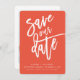 Invitation ENREGISTRER LA DATE manuscrite script orange blanc