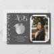 Célébrez le nouveau professeur diplômé de l'école d'éducation avec cette pomme d'enseignant argent et gris avec le casquette de diplôme, faire-part de graduation! Elégant avec une bordure photo vintage et des accents de confettis argentés! Parfait pour tous ceux qui sortent de l'université et deviennent enseignant!