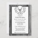 La conception de l'enterrement de vie de garçon comprend une photographie en noir et blanc de planches de bois rustiques en arrière-plan. Il y a un rectangle blanc uni avec une bordure gris foncé avec un texte personnalisable en police noire. En haut se trouve un cercle blanc avec une bordure gris foncé. Au centre, il y a un dessin au crayon noir et blanc d'une tête de cerf. Autour du cercle, il y a un texte qui dit Stag Party. Stag Party. Stag. Stag Party. Le verso de l'invitation comporte la même photographie de bois en noir et blanc. C'est l'invitation parfaite pour votre enterrement de vie de garçon.