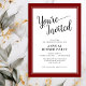 Cette invitation à dîner d'entreprise moderne présente un texte élégant et est accentuée d'une bordure rouge foncé. Cette invitation peut être adaptée à tout événement d'entreprise.