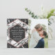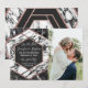 Moderne, élégante et chic carte de mariage 'Save-the-Date' à motif faux marbre noir et blanc avec un hexagone en or rose. Ce design classique et sophistiqué est parfait pour les jeunes mariés branchés et élégants. Personnalisez avec votre propre message au recto ainsi qu'un monogramme personnalisé au verso. Conception d'impression photo.