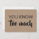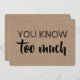 "Vous en savez trop." "Serez-vous ma bonne d'honneur ?" Cartes de proposition amusantes dans un style typographique moderne. N'hésitez pas à changer "Maid of honneur to "Matron of honneur" ou "Bridesmaid".