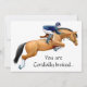Conception originale de beaux-arts d'un cheval et d'un cavalier sautants d'exposition sur une qualité et invitation personnalisable de partie par le studio de ronronnement de deux chats.